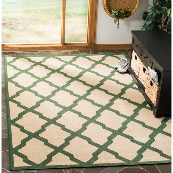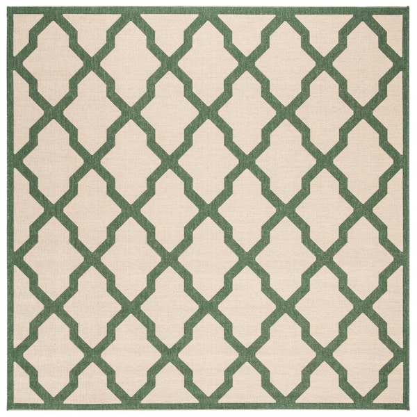 Linden Cream/Green 7 ft. x 7 ft. Square Geometric Diamonds Border Area Rug