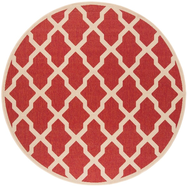 Linden Red/Cream 7 ft. x 7 ft. Round Geometric Diamonds Border Area Rug
