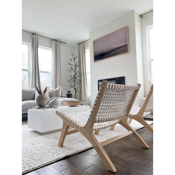 • White woven cognac leather with natural sungkai wood frame