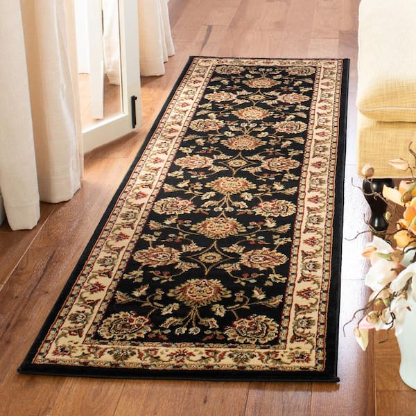 Lyndhurst Black/Ivory 2 ft. x 12 ft. Border Floral Geometric Runner Rug