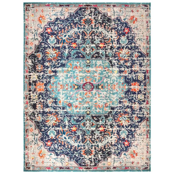 Madison Black/Teal 10 ft. x 14 ft. Border Geometric Floral Medallion Area Rug