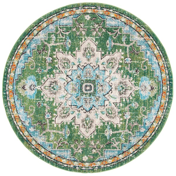 Madison Green/Turquoise 8 ft. x 8 ft. Border Geometric Floral Medallion Round Area Rug
