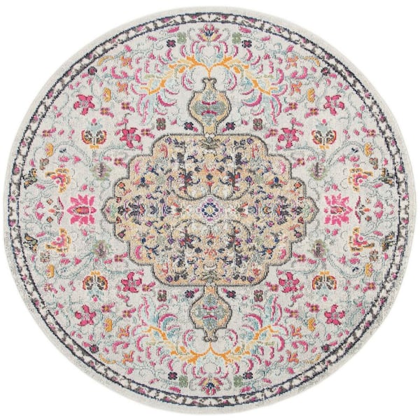 Madison Grey/Gold 11 ft. x 11 ft. Border Geometric Floral Medallion Round Area Rug