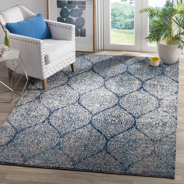 Madison Navy/Silver Doormat 2 ft. x 4 ft. Medallion Geometric Area Rug