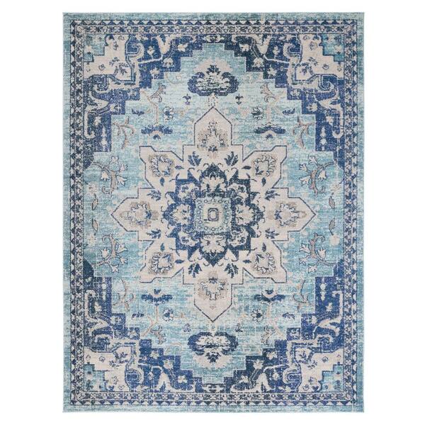Madison Teal/Navy 10 ft. x 14 ft. Distressed Border Area Rug