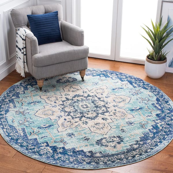 Madison Teal/Navy 8 ft. x 8 ft. Distressed Border Round Area Rug