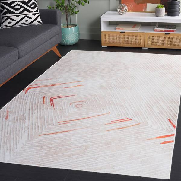 Malibu Beige/Rust 6 ft. x 6 ft. Machine Washable Diamond Striped Square Area Rug