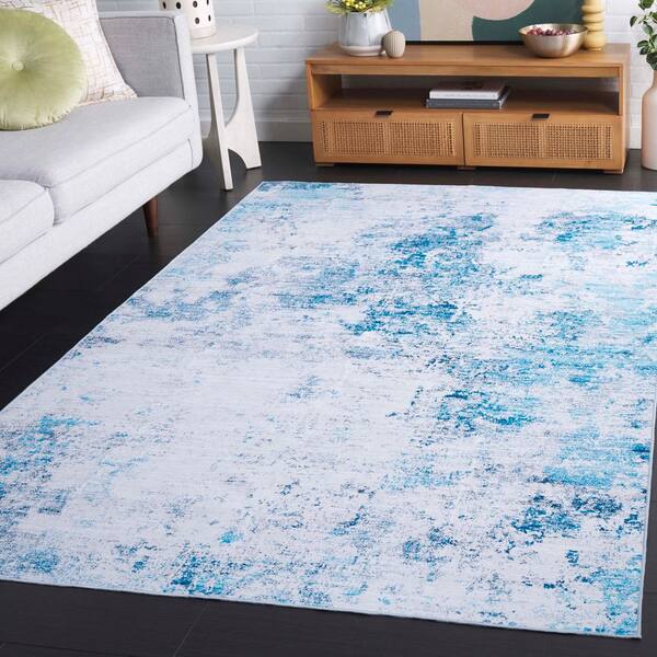 Malibu Beige/Turquoise 4 ft. x 6 ft. Machine Washable Patchy Distressed Area Rug