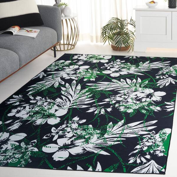 Malibu Black/Green 9 ft. x 12 ft. Machine Washable Abstract Botanical Area Rug