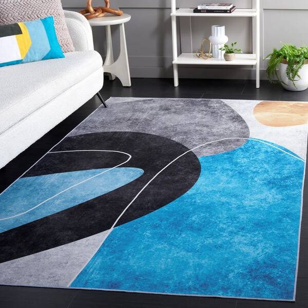 Malibu Dark Gray/Turquoise 3 ft. x 5 ft. Machine Washable Modern Swirl Area Rug