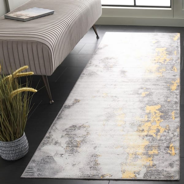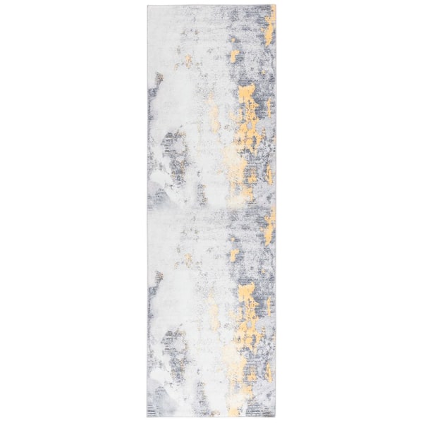 Malibu Gray/Gold 3 ft. x 8 ft. Machine Washable Distressed Abstract Runner Rug
