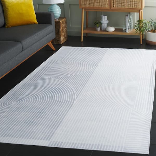 Malibu Gray/Light Gray 6 ft. x 6 ft. Machine Washable Striped Modern Square Area Rug