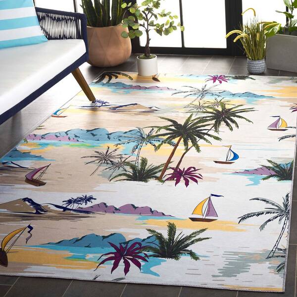 Malibu Ivory/Taupe 8 ft. x 10 ft. Machine Washable Tropical Area Rug
