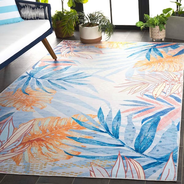 Malibu Light Blue/Beige 5 ft. x 8 ft. Machine Washable Oversized Leaf Area Rug
