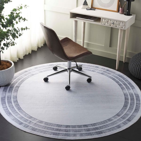 Malibu Light Gray/Gray 6 ft. x 6 ft. Machine Washable Border Striped Round Area Rug