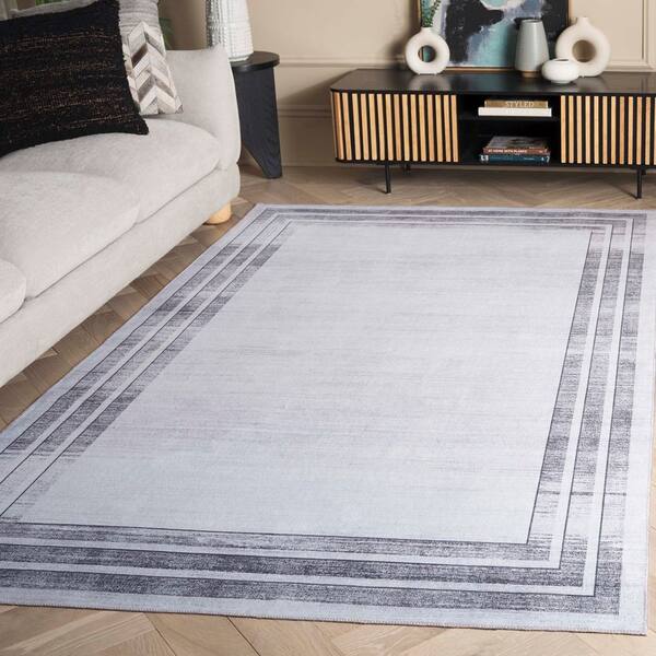 Malibu Light Gray/Gray 6 ft. x 9 ft. Machine Washable Border Striped Area Rug