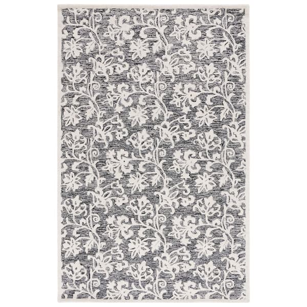 Martha Stewart Black/Ivory 8 ft. x 10 ft. Floral Area Rug