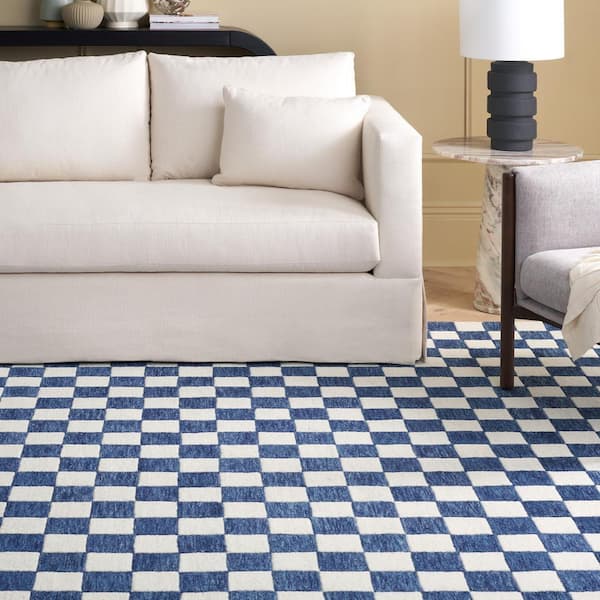 Martha Stewart Blue/Ivory 8 ft. x 10 ft. Checkered Area Rug
