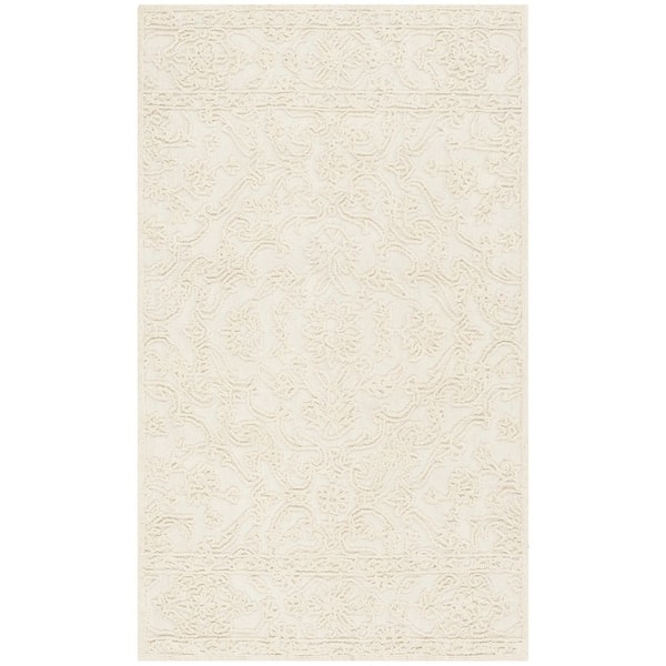 Martha Stewart Ivory Doormat 3 ft. x 5 ft. Floral High-Low Area Rug