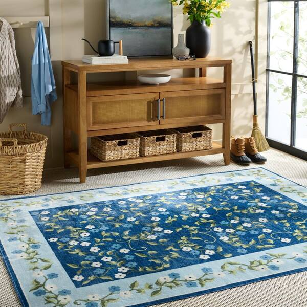 Martha Stewart Washable Dark Blue/Light Blue 5 ft. x 8 ft. Machine Washable Floral Border Abstract Area Rug