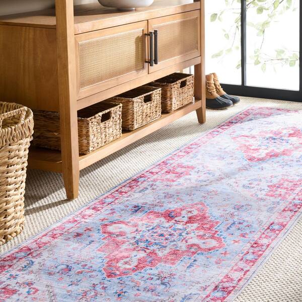 Martha Stewart Washable Red/Blue 3 ft. x 8 ft. Machine Washable Medallion Floral Runner Rug