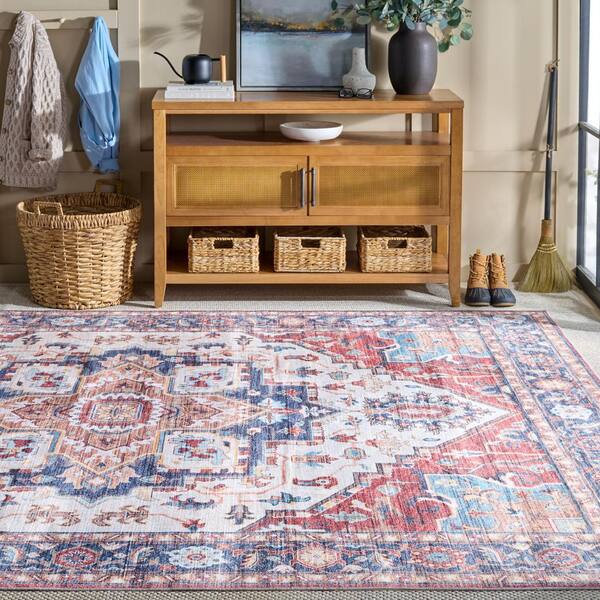 Martha Stewart Washable Rust/Blue 9 ft. x 12 ft. Machine Washable Floral Medallion Area Rug