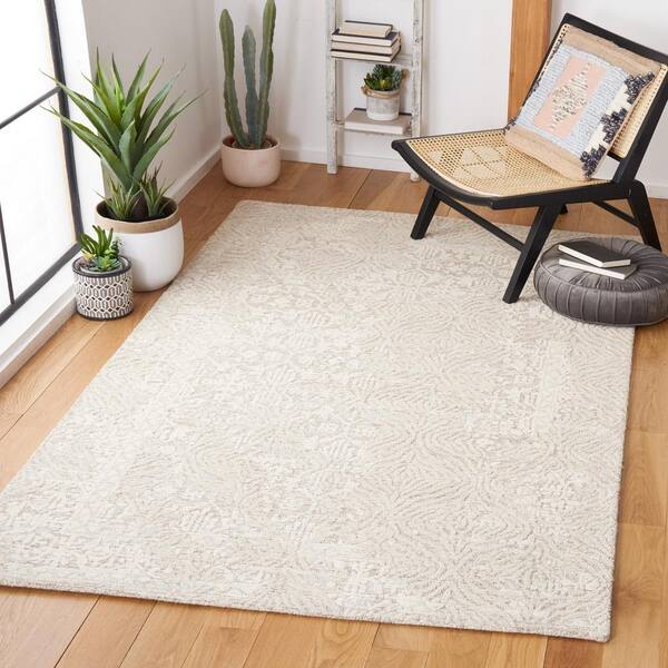 Metro Natural/Ivory 4 ft. x 6 ft. Solid Color Floral Area Rug