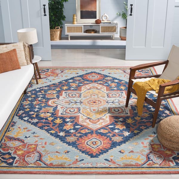 Metro Navy/Red 8 ft. x 10 ft. Ornate Diamond Medallion Area Rug