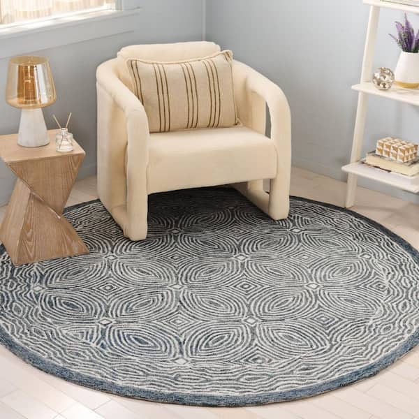 Micro-Loop 6 ft. x 6 ft. Navy/Ivory Border Abstract Geometric Round Area Rug