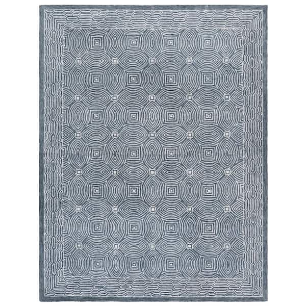 Micro-Loop 8 ft. x 10 ft. Navy/Ivory Border Abstract Geometric Area Rug