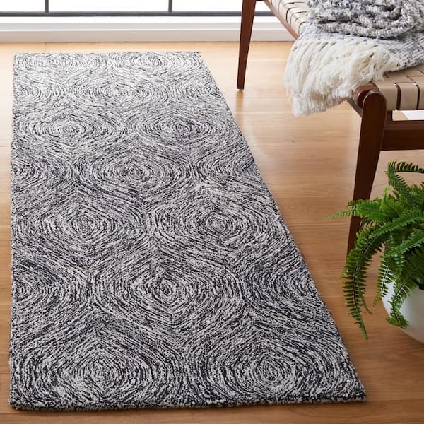 Micro-Loop Black/Ivory 2 ft. x 7 ft. Distressed Abstract Floral Runner Rug