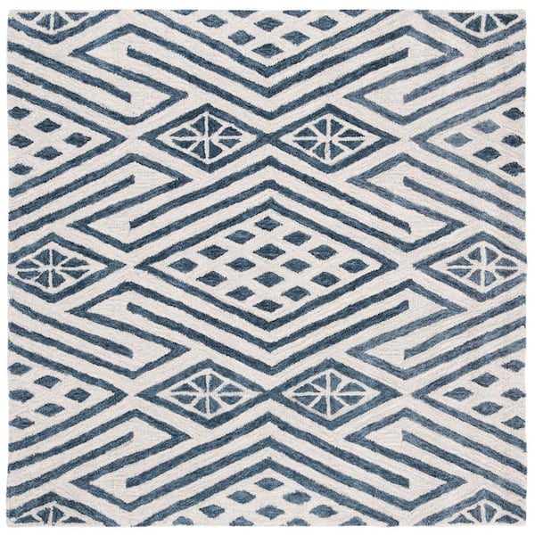 Micro-Loop Blue/Ivory 5 ft. x 5 ft. Square Area Rug