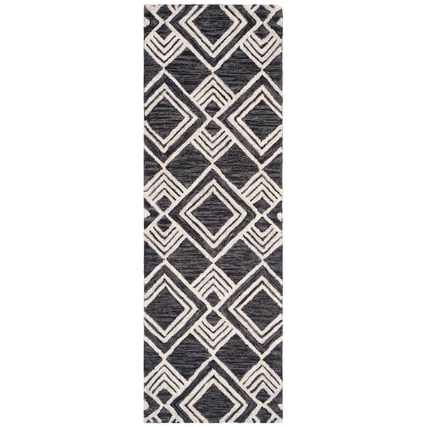 Micro-Loop Charcoal/Ivory 3 ft. x 9 ft. Multi-Diamond Geometric Runner Rug