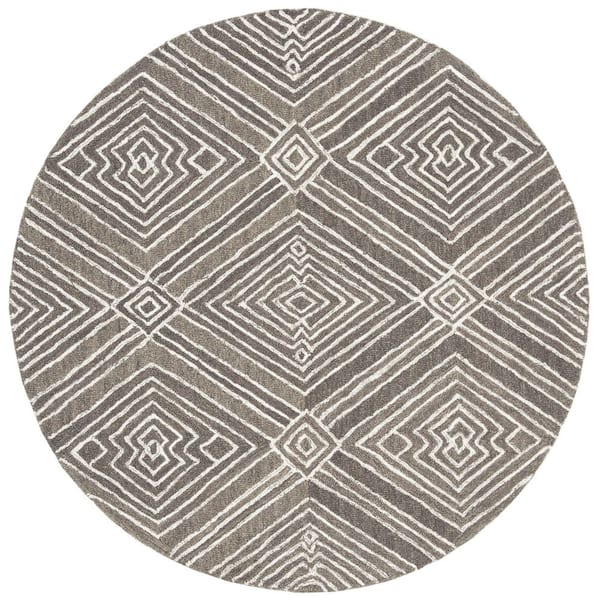Micro-Loop Dark Grey/Ivory 5 ft. x 5 ft. Geometric Round Area Rug