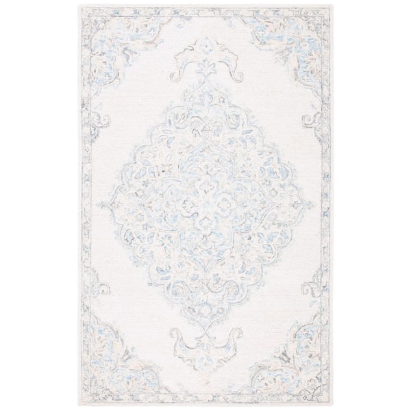 Micro-Loop Ivory/Blue 5 ft. x 8 ft. Medallion Oriental Area Rug