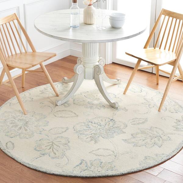 Micro-Loop Ivory/Blue 6 ft. x 6 ft. Abstract Floral Round Area Rug