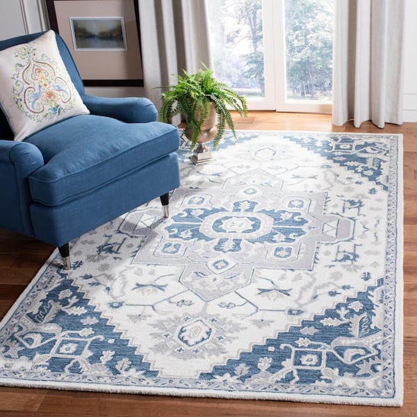 Micro-Loop Ivory/Navy 4 ft. x 6 ft. Floral Medallion Area Rug