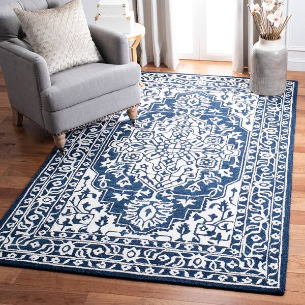Micro-Loop Navy/Ivory 5 ft. x 8 ft. Medallion Oriental Area Rug