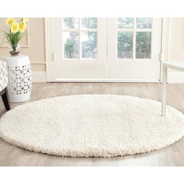 Milan Shag Ivory 5 ft. x 5 ft. Solid Flokati Round Area Rug