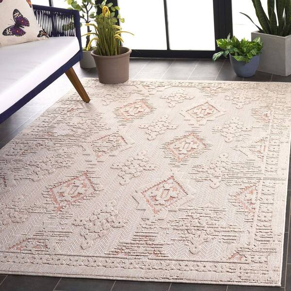 Milos Ivory/Rust 9 ft. x 12 ft. Geometric Diamond Indoor/Outdoor Area Rug