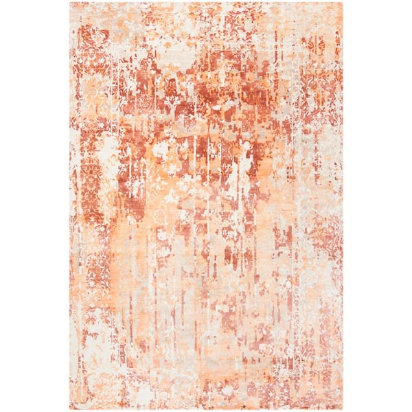 Mirage 6 ft. x 9 ft. Ivory/Rust Border Abstract Distressed Area Rug