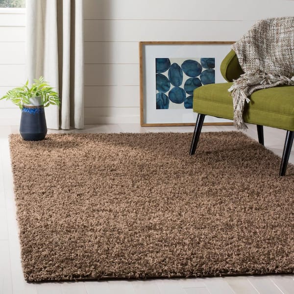 • Plush, earthy brown shag rug emulates classic Flokati