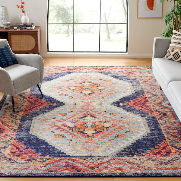 Monaco 9 ft. x 12 ft. Rust/Multi Distressed Geometric Area Rug