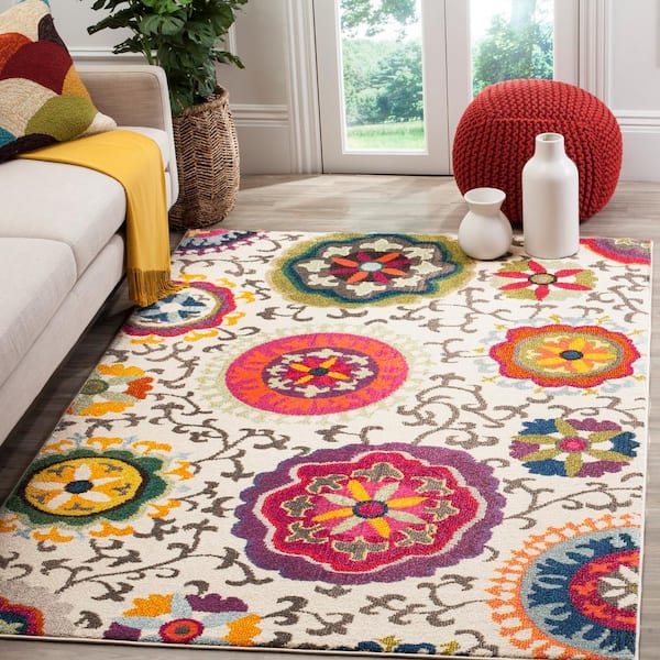 Monaco Ivory/Multi 9 ft. x 12 ft. Floral Area Rug