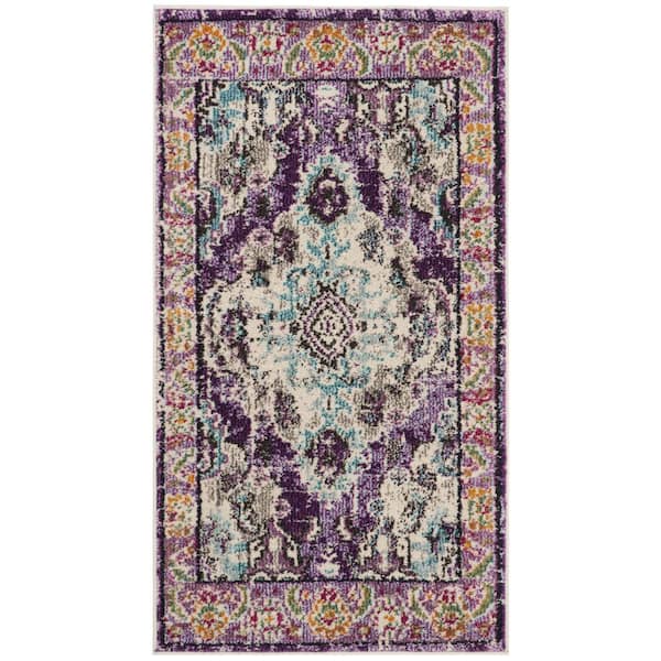 Monaco Violet/Light Blue Doormat 2 ft. x 4 ft. Distressed Border Medallion Area Rug