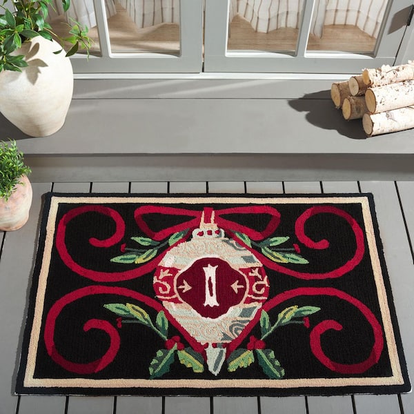 Monogram Black/Multi 3 ft. x 4 ft. "I" Ribbon Swirl Indoor/Outdoor Area Rug