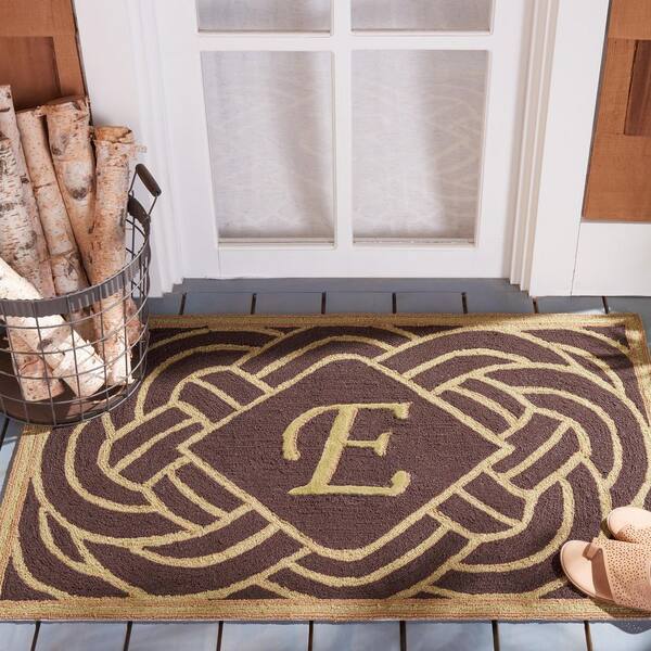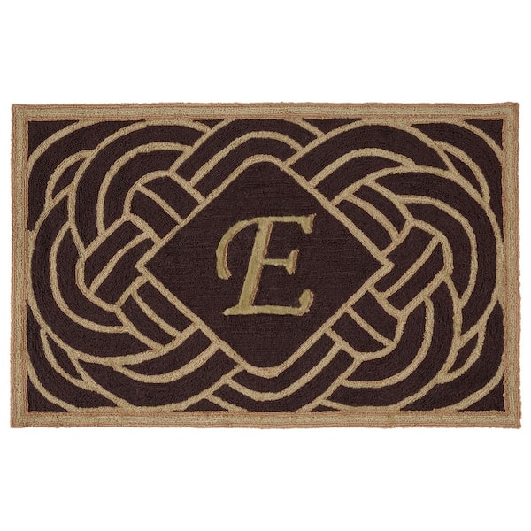 Monogram Chocolate 3 ft. x 4 ft. "E" Ornate Swirl Indoor/Outdoor Area Rug