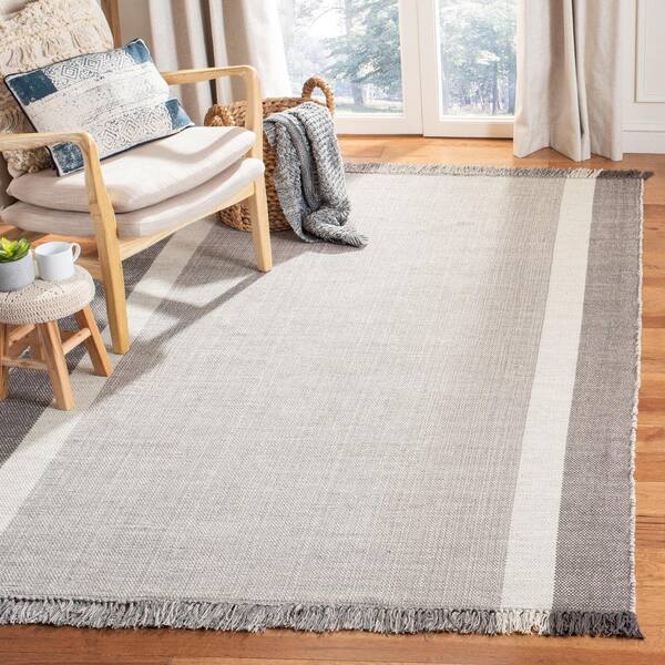 Montauk Ivory/Gray Doormat 3 ft. x 5 ft. Striped Border Gradient Area Rug