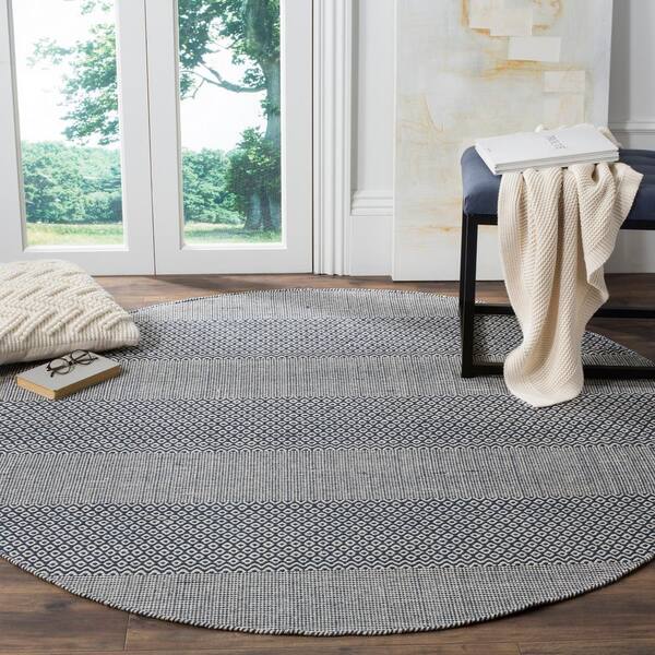 Montauk Ivory/Navy 8 ft. x 8 ft. Striped Diamonds Round Area Rug