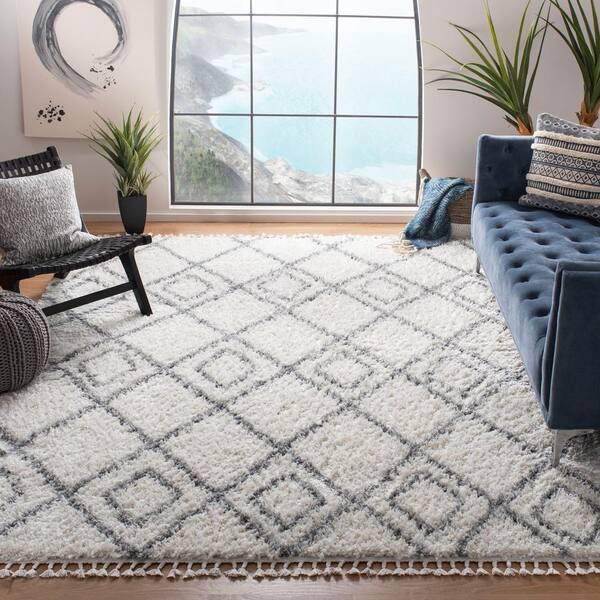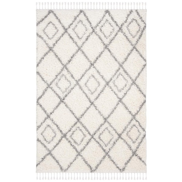 Moroccan Tassel Shag Ivory/Light Gray 8 ft. x 10 ft. Geometric Area Rug